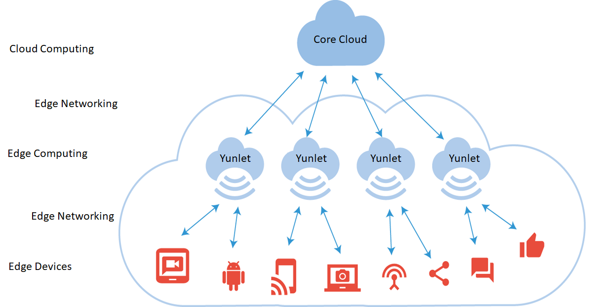 边缘云计算平台Yunlet,融合了计算,存储和网络等功能。解决方案OpenMEC产品包括狭义MEC(Mobile Edge Computing)和广义MEC(Multi-access Edge Computing),形态从单融合系统到微型/小型数据中心,位置分布从基站服务器,楼道服务器,CO端局,园区和企业侧边缘云,到矿区,智能工厂,大卖场等垂直场景的边缘云。